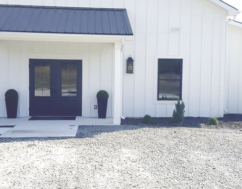 The Wilshire is a modern building that is white both inside and out. Three large black chandeliers hang down the middle of the space below large white oak beams. As you look to your left you will see three black french doors overlooking the beautifully landscaped courtyard, with a tiered rock wall where the ceremony will take place, and lights strung across the entire area. This is also the perfect spot for your cocktail hour and rehearsal dinner. Inside is an arched modern bar, and beautiful white oak staircase.